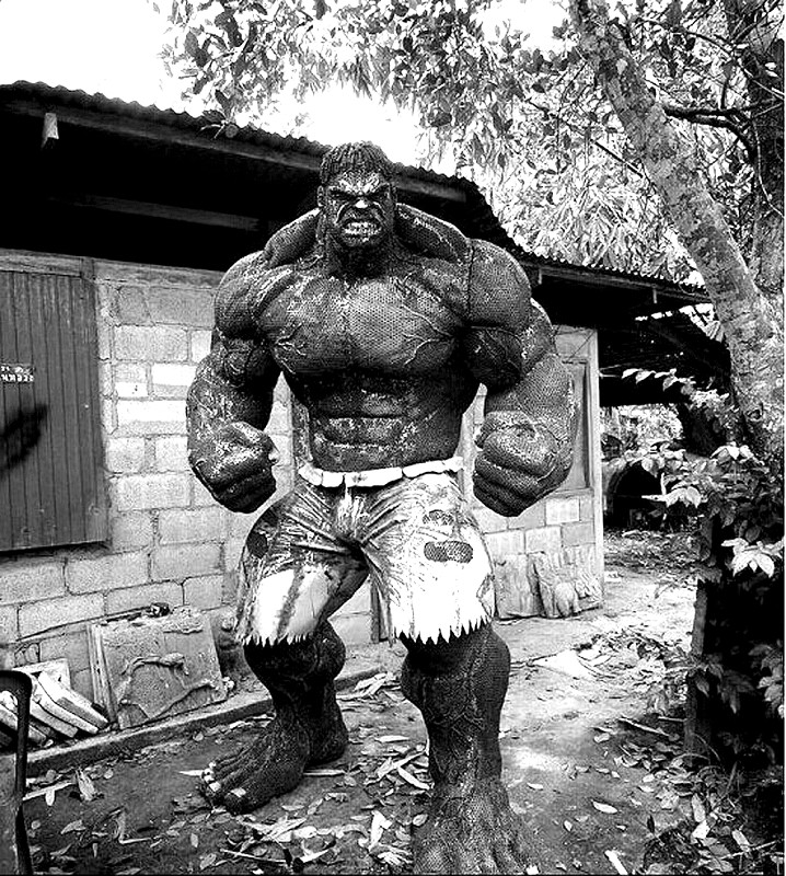 泰国一家废金属加工厂近日利用废弃的螺栓、螺母等汽车零部件,制做出令人称奇的各类雕像,其中的代表作是真人大小的绿巨人雕像。据介绍,这是一家专门从事用废弃金属进行艺术创作活动的加工厂。