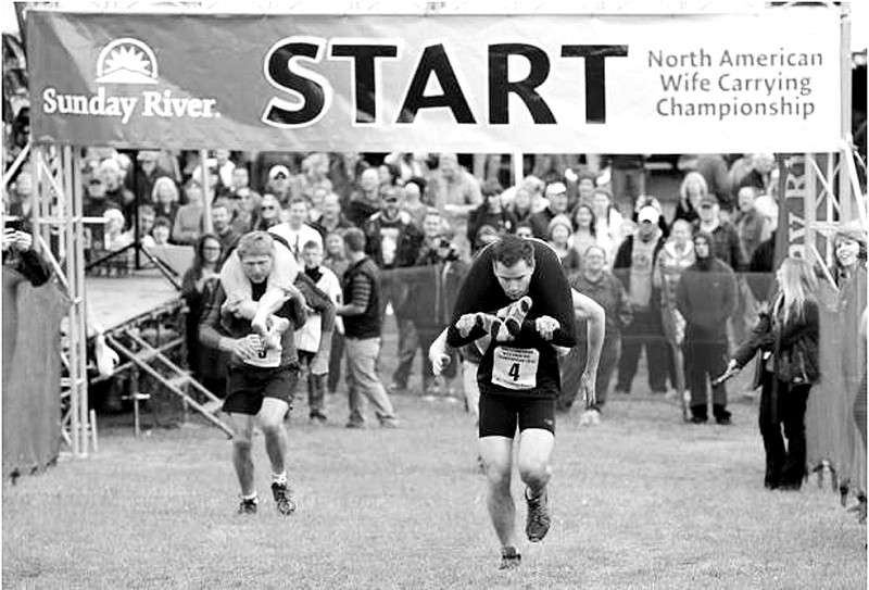 近日,美国缅因州纽里星期日河度假村将举行了“背妻赛跑锦标赛”。主办方称,他们将给最快跑过278码(约合254米)障碍赛道的组合发放与女参加者体重相等的啤酒以及数额5倍于女参加者体重的现金。