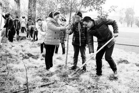3月7日是建德市寿昌第二小学开学第一天,该校开展了“我与小树共成长”植树护绿活动。当天,20多名少先队员在老师的带领下,将红叶石楠树苗栽种在操场周围,给校园添上新“绿装”。 宁文武 摄