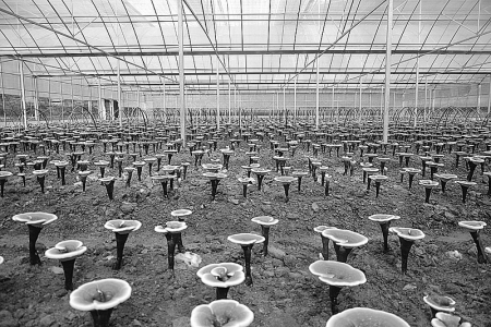 用遮阳、喷水、掀盖膜等方法控制出芝场的温度,最适温度为20℃—30℃。