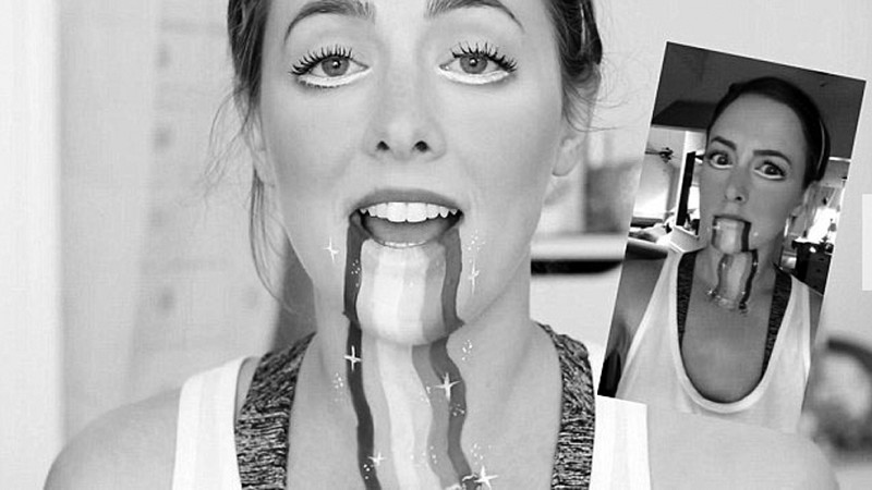 想象过彩虹会从人的嘴里“吐”出来么?随着美国万圣节的临近,网络上出现了大批人们扮成鬼怪的照片。近日,网络美妆达人布里塔尼就上传了一段教你如何在脸上画出“呕吐彩虹”妆的视频。要画出“呕吐彩虹”的效果其实只需要平时用的眼影或者口红就可以,或者画画用的颜料也行。