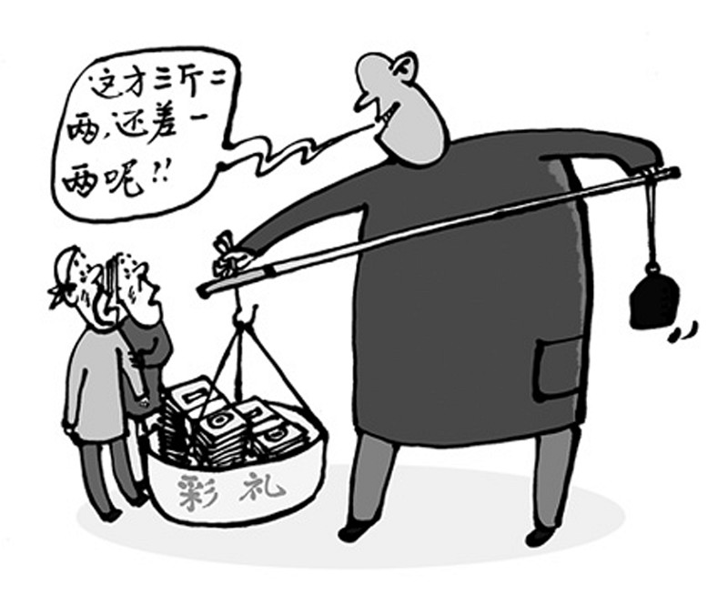 春节前后是各地婚嫁喜事的高峰。近年来,随着收入水平的提高,有些地方的婚礼陋习有所抬头,攀比彩礼、大操大办。比如山东部分农村彩礼拿秤称,一般是3斤3两百元大钞。
