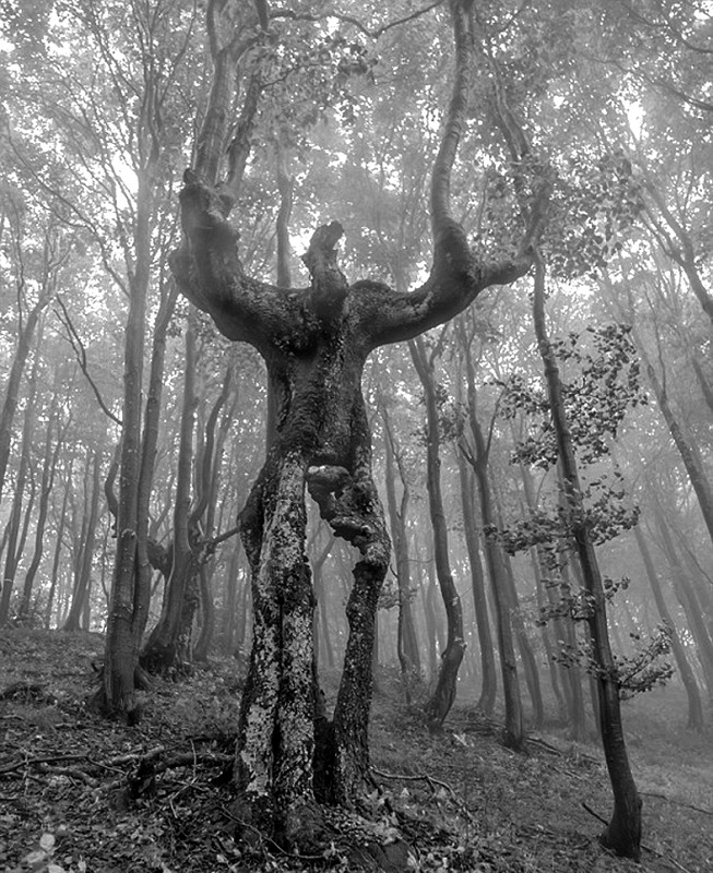 近日,远足爱好者德扬·科斯夫在保加利亚的巴尔干山脉森林深处发现一棵巨型树,形态像极了《魔戒》中的树人。这棵巨型山毛榉树的枝干长成人形,有着人的头部、胳膊和腿的形状,树干比例也酷似人形。