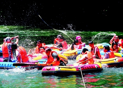 7月20日,来自各地的1000多名市民和游客在遂昌县神龙谷河道里漂流纳凉。当日,遂昌气象台发布高温报告,未来3天,当地最高气温达37-40℃。面对高温,许多市民和游客携儿带女前往神龙谷享受大自然的清凉。