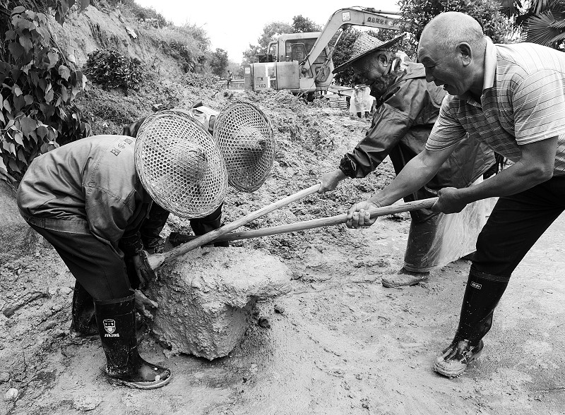 9月30日,武义县公路部门与柳城畲族镇干部及当地村民,在六葱湖盘山公路上清除泥石。受台风“鲇鱼”影响,武义县连降暴雨,致使一些山区公路出现塌方,交通受阻。灾情发生后,武义公路部门与当地镇村干部群众立即动手清除塌方泥石,力争早日恢复公路畅通。 张建成 摄