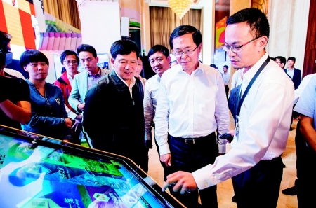 10月19日,代省长车俊(前右二)参观互联网+现代农业成果展。