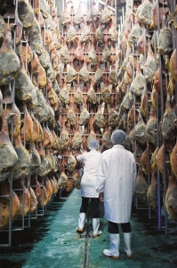 华统集团的火腿生产车间一角。