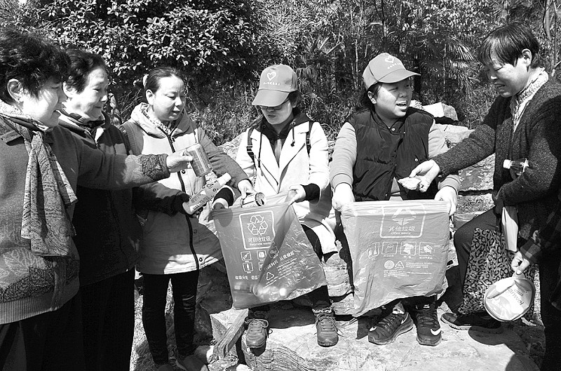 近日,衢州市柯城区衢化街道花径一村和孔家村的村民们来到烂柯山,分头收集景区中的垃圾,比拼垃圾分类小知识。