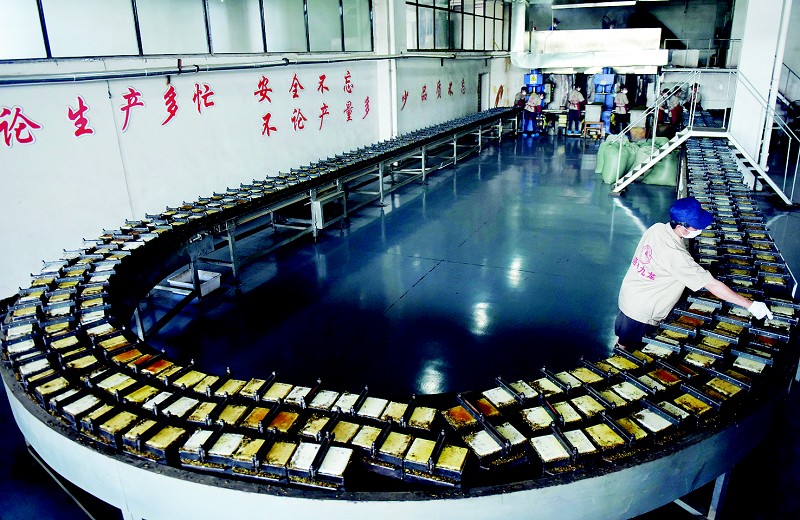 5月11日,武义骆驼九龙砖茶公司员工忙着生产出口到“一带一路”沿线国家的茶叶。随着“一带一路”建设和“中欧班列”的开通,该企业根据新丝路沿线国家消费者的不同饮茶习俗,大力开发适销对路产品。