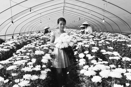 7月12日,磐安县佳禾家庭农场员工在花卉基地采摘高山菊花。近年来,磐安引导农民发展设施农业,种植药材、高山有机蔬菜和大棚花卉等特色农产品。目前,全县药材、果蔬和花卉等设施农业面积达2000多亩,年产值达2000多万元。 孔德宾 摄