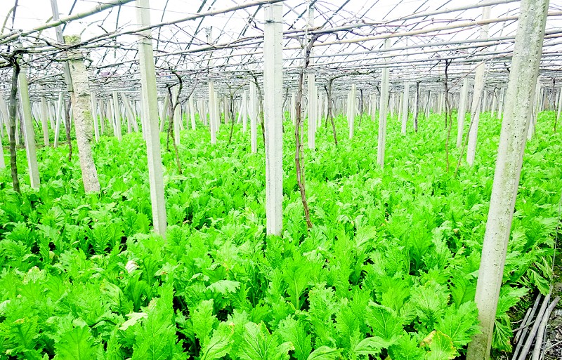 葡萄是藤本落叶植物,一般采用棚架式栽培,植株间距宽、棚下空间大,秋冬季葡萄落叶后,棚架下的光照条件良好,利用葡萄休眠期,在葡萄园内套种一季榨菜,不但可提高土地利用率,增加收入,而且榨菜收获后的老叶翻入土中,又能增加土壤有机质含量,有利于葡萄生长。目前,这一种植模式已在上虞、余姚等葡萄产区大面积推广,如上虞区盖北镇约1.2万亩葡萄园,其中有9500亩套种了榨菜,占比近80%。