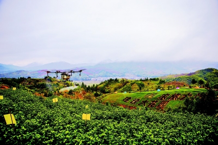 11月22日,植保无人机在龙泉市兰巨省级现代农业园区万亩特色茶叶示范区作业。 本报记者 叶敏 摄
