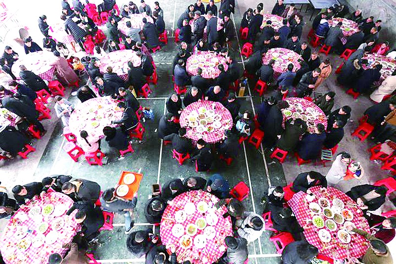 正月初五,苍南县大河川底村近600位名村民欢聚一堂,把酒言欢,增进乡情,品尝邻里和谐“好味道”。