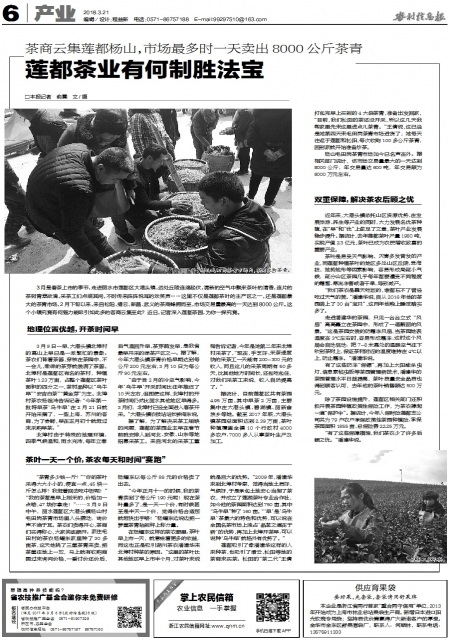 杨山毛田岗茶青市场如今已名声在外。据相关部门统计,该市场交易量最大的一天达到8000公斤,年交易量达600吨,年交易额为8000万元左右。