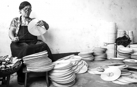 近日,在衢州市柯城区万田乡冯坦村的冯美红家庭草帽工厂里,熟悉传统麦秆扇制作手艺的大妈正飞针走线赶制麦秆扇。据冯美红介绍,旺季时,她家作坊日产麦秆扇3000把,麦秆草帽上万顶,除批发本地市场外,大部分销往江西等省。