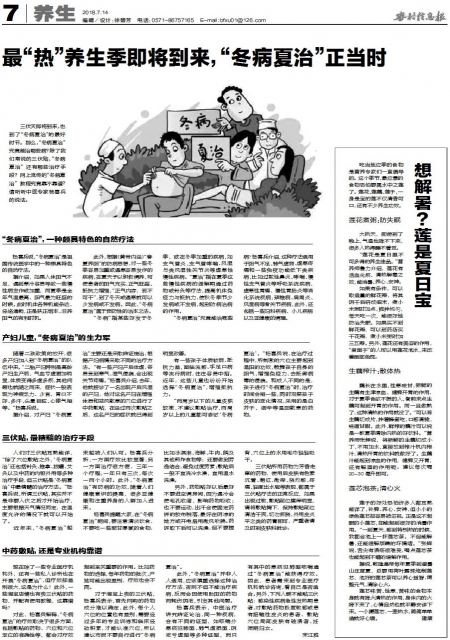 杨喜兵说,“冬病夏治”是祖国传统医学中的一种颇具特色的自然疗法。