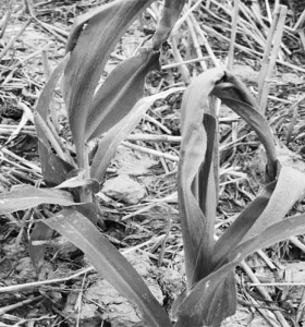 2.对于已形成“鞭状”的玉米苗,可用锥子从鞭状叶基部扎入,从中间豁开,让心叶恢复正常生长。