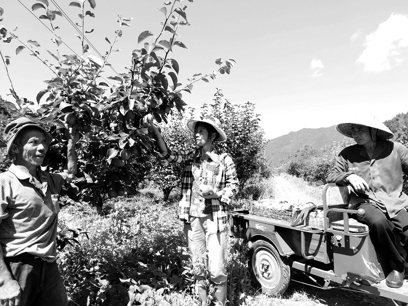 日前,开化志红家庭农场的工作人员正忙着采摘“赢丰”翠冠梨,销往安徽、江西等地。今年农场的梨子供不应求。 齐振松 汪榜团 摄