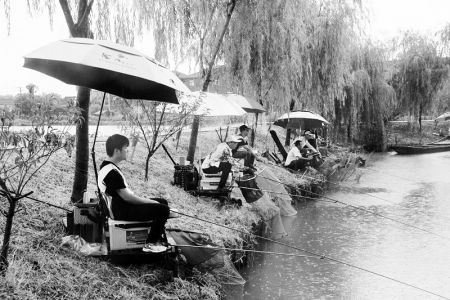 近日,在湖州市吴兴区东林镇泉益村,40多名钓鱼爱好者在新建的鱼塘边垂钓。此前,这里曾是鳖棚林立,东林镇通过整治转型,鼓励养殖户从事生态养殖,其中对外开放养殖垂钓水面1500多亩,生态养殖亩均效益在5000元以上。 邓德华 徐成 摄