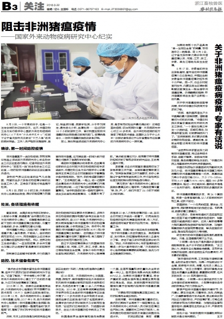 关于非洲猪瘟疫病疫苗等问题,来听听中国农科院有关专家说了啥。