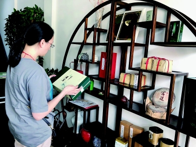 顾客在“莫干黄芽”专卖店选购茶叶。本报记者 程益新 摄