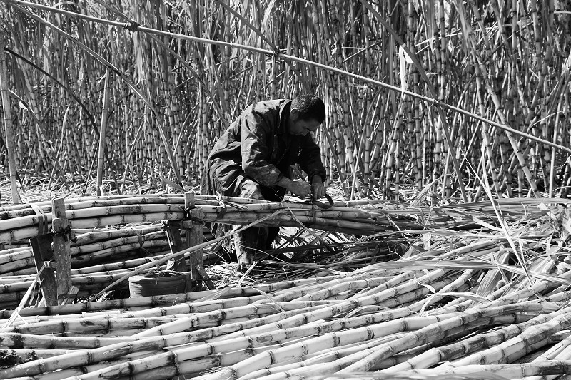 台州市黄岩区甘蔗喜获丰收。图为该区院桥镇桐村村甘蔗种植大户郏国海正忙着收甘蔗。据他介绍,今年的甘蔗秆长、株粗,刚上市时可以卖到6元/株,每亩净收入5000多元。 金曼春 摄