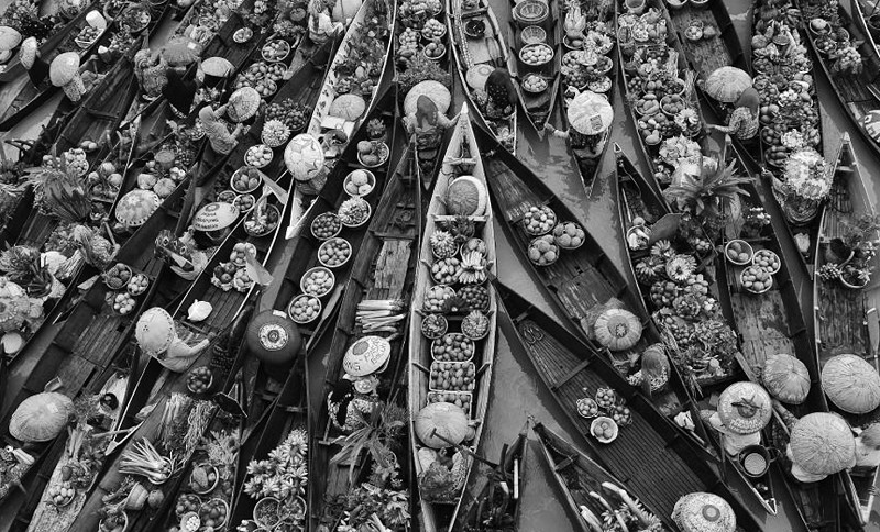 近日,摄影师Saipulah在印度尼西亚班加尔地区拍摄了一组洛克班坦水上集市的照片。数以百计的小贩乘坐小船聚集在水上,出售他们亲手采摘的新鲜果实和蔬菜,他们的衣着和货物融合出令人惊叹的色彩盛宴。