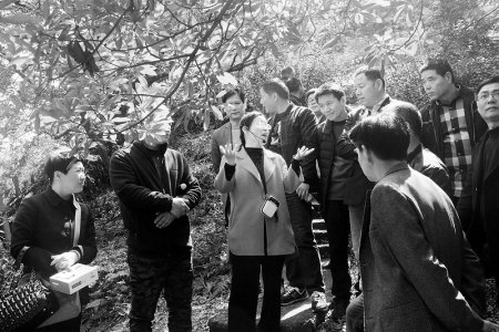 绍兴柯桥区农广校自去年以来在湖塘街道开设果树生产专业中专班,通过理论培训和田间授课相结合,培育新型农民。图为近日,农技专家在杨梅山上为果农分析杨梅长势,介绍管理要点。 傅光明 摄