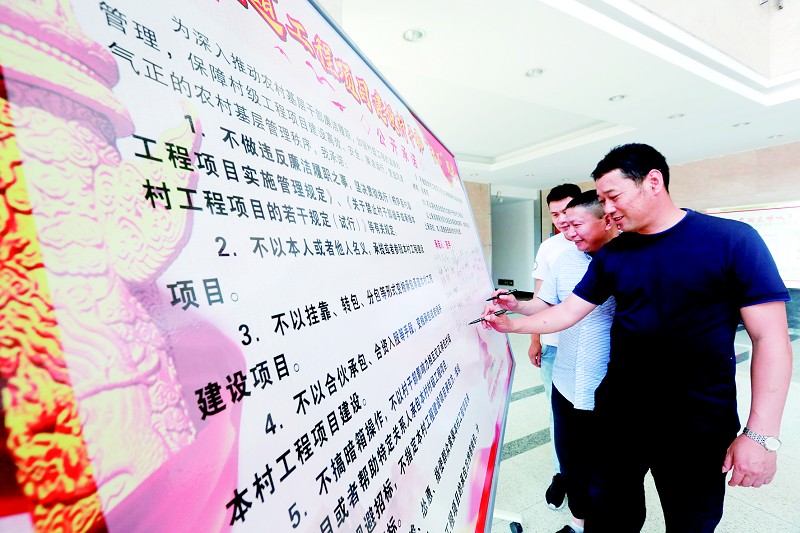 今年以来,桐庐县切实规范村级“小微权力”运行,深入开展村干部插手干预工程建设专项治理,促进基层干部廉洁履职。图为日前,城南街道组织村(社)干部签订不插手或承接本村工程项目承诺书。