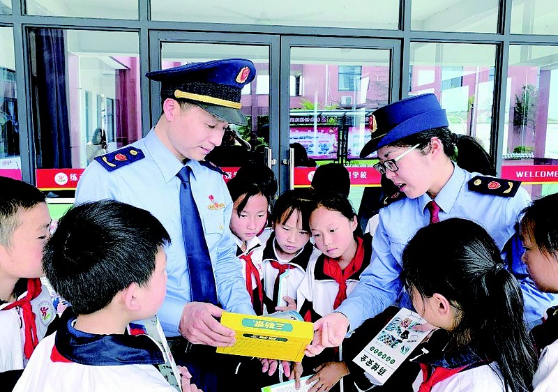近日,湖州市南浔区市场监管局练市镇分局联合辖区内各小学开展药品知识科普进校园活动。此次活动主要以儿童用药安全为切入点,向学生科普正确选购、服用药品的方法,以及滥用药品的危害等内容。图为执法人员在向学生们讲解处方药与非处方药包装的区别。 孙建新 周建莉 摄