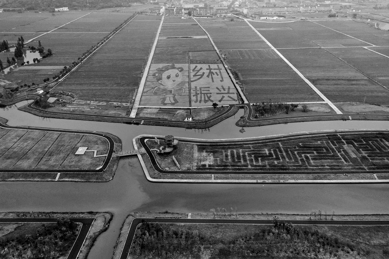 从高空俯瞰温州市曹村镇天井垟水田,一幅用彩色水稻种出的“进士小曹”和“乡村振兴”巨幅稻田画格外显眼。曹村生态环境优越,文化底蕴深厚,素有“中华进士第一村”“中国耕读第一镇”的美誉。 苏巧将 摄