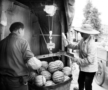 日前,在玉环市干江镇滨海村西瓜管理房中,农户鲍学祥手拿操控器,将房内的一筐筐西瓜往外吊。该农户花了5000多元钱,利用行车、电子吊秤、钢材等制作了一套系统,轻松将西瓜过秤并运送到汽车边,既减轻劳动强度又提高了效率。 吴达夫 摄