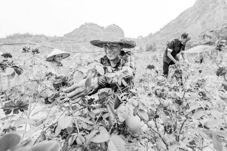 近年来,湖州吴兴区东林镇对废弃矿山进行生态复绿,并通过土地流转,建立320亩的良田花卉种植场。现在日售花苗2000多株,年收入可达300多万元,创造了矿山复绿的“美丽经济”。图为近日员工在修剪花苗。 陆一平 摄