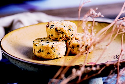 宁溪麦鼓头选用的馅料别具一格,有猪肉、霉干菜(也可以是咸菜)、虾皮、葱花。猪肉,是当地农户自腌的腊肉,将新鲜的五花肉放在盐中不停地揉搓,使盐分渗入肉中,然后将猪肉放在阳光下晒得发红即成腊肉。霉干菜(当地人称“菜瘪”),是用萝卜叶(俗称“菜头缨”)晒干,放在腌肉缸中压得半干半湿的那种。烤熟的麦鼓头,黄灿灿的饼皮散发着麦粉香,梅干菜夹杂咸猪肉的香味隔着饼皮都能闻到。一口咬下去,里面的馅料一览无遗,馅与饼皮一起入嘴,简直美味。