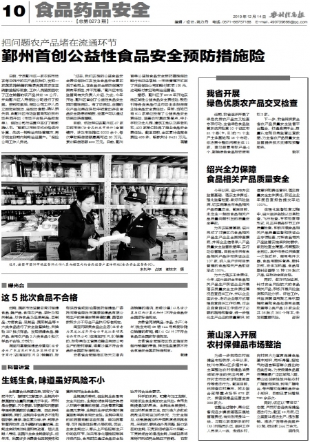 同时,做好风险监测,针对安全风险较大的食品相关产品,积极开展风险监测和风险分析、评估工作。共监测黄酒用聚乙烯吹塑桶瓶盖和食品包装用金属瓶盖等2类产品28家企业共36批次360个样本,未发现重要风险。 邵安