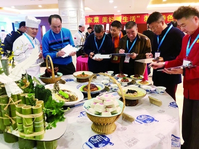吴国平在品尝了一圈参赛菜品后,对衢江区的“杜泽灌肠”赞不绝口。“这个灌肠里面是米粉和糯米,外面的大肠经过卤制,看着很土吃着很香,既能当主食也能当菜。” 吴国平笑着说,还有千张包、脆皮桑叶等“土味”菜品,他也很感兴趣。看来,“外婆家”明年的菜单上会有新品了。“既然是农家菜大赛,就要突出‘原汁原味、纯真质朴’这八个字。”浙江商业职业技术学院旅游烹饪学院院长骆高远说,参赛菜品要利用本土种养的食材、以当地传统烹饪方法加工制作,才能更好体现乡村饮食文化,扩大农家菜影响,为我省乡村产业发展增添新动力。