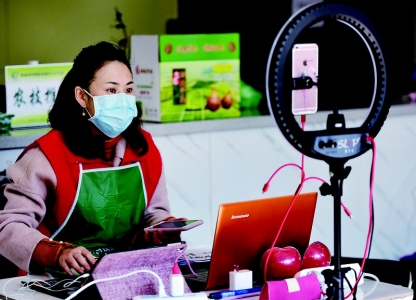 近段时间来,武义县农业农村局益农信息中心每天直播展示农民送来的新鲜蔬果,居民用微信关注就能选购,志愿者会分送到县城各居民小区门口。图为2月9日,小主播正在直播展示农产品。